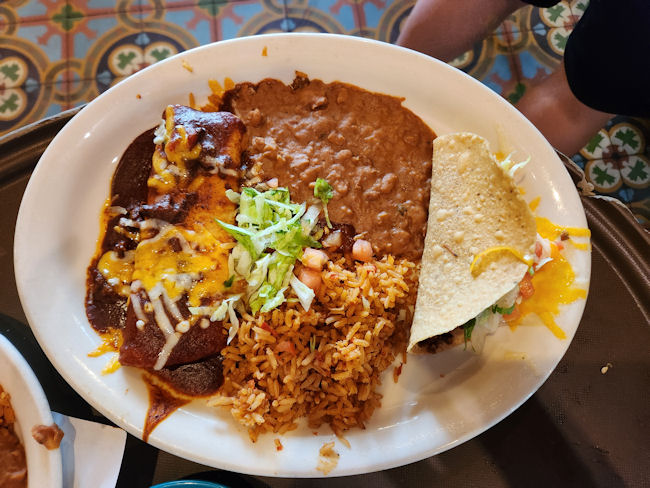 Steak Burrito Beans Rice and Taco